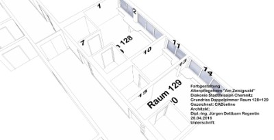 Vorentwurf und Grundlagenermittlung in einem stationären Altenheim. Konzeptentwicklung und Planung von zwei Wohngruppen und einer Pflegeoase und Gemeinschafträume in Hessisch Oldenburg (2010).