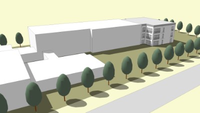 Im Rahmen der Erweiterung sollte der Mittelbau über den Speisesaal um ein Geschoss aufgestockt werden. Darüber hinaus sollte eine Wohngruppe für sechs bis acht Bewohner/innen entstehen (2009).