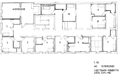 Gutachten und Konzeptentwicklung zur baulichen Umgestaltung und Modernisierung eines Altenheimes in Berlin-Charlottenburg. Die bauliche Umgestaltung sollte die konzeptionelle Anpassung an neue Pflegekonzepte wie z.B. Wohn- und Hausgemeinschaften und Reha-Maßnahmen mit aufnehmen.