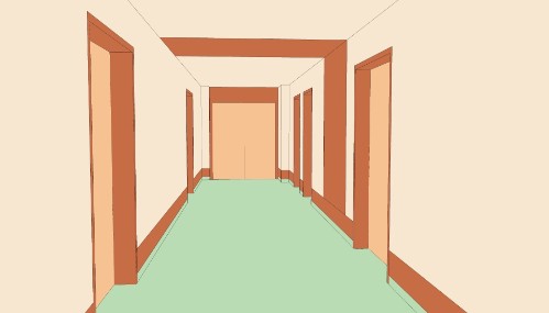 Farbgestltungen der Flure und eines DZ für ein Altenheim in Chemnitz.