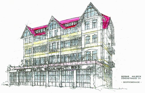 Hotel im Seebad Ahlbeck Entwurf und Ausführung: Architekt Dipl.-Ing. FH, Dipl.-Ing. TU Jürgen Dettbarn-Reggentin M.A. Das Haus wurde 1900 in der ortstypischen klassizistischen Bauweise der Bäderarchitektur erbaut. Schon zu den damaligen Zeiten wurde es als "vornehmstes Haus ersten Ranges" geführt, das direkt am Strand gelegen ist. Es wurde umfassend aufwendig rekonstruiert durch das Architekturbüro Dettbarn-Reggentin. Nach seiner Fertigstellung umfasst es: Zwei Appartements mit Seeblick 27 Zimmer und Suiten ein Restaurant mit Cafeterrasse Fitnessbereich mit Whirlpools, Solarium und Massagen Ein Konferenzraum für 10-30 Personen